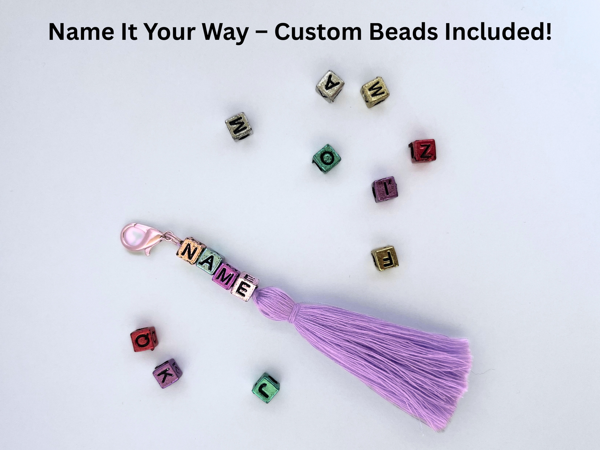 Personalized name tag with tassel – choose any name or keep our original “Midnight”